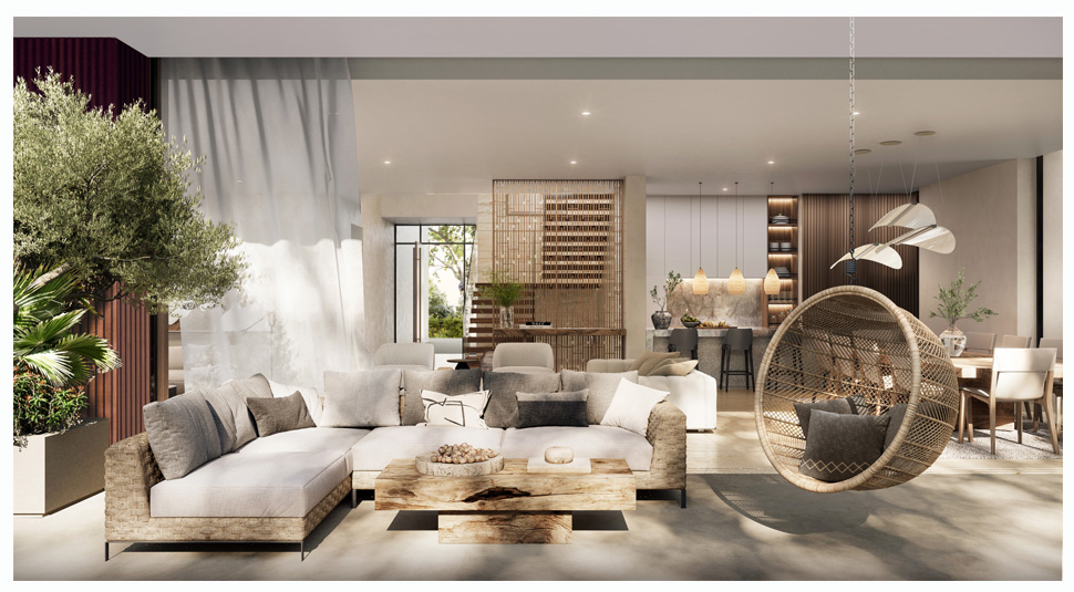 Sizes: 5,800 to 8,000 sq. ft. Layout: 4, 5, and 6-bedroom configurations. Designed for spacious living with open-plan layouts, high ceilings, and large windows that allow for abundant natural light.