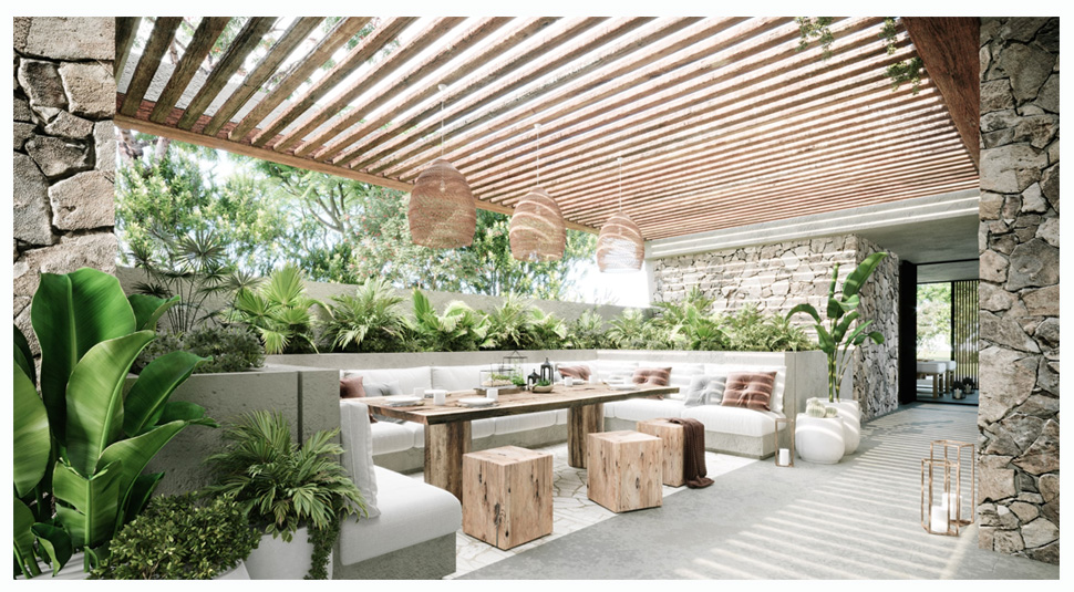 The villas showcase contemporary architecture with a blend of modern and traditional design elements. The use of natural materials such as stone, wood, and glass creates a harmonious balance with the surrounding environment.